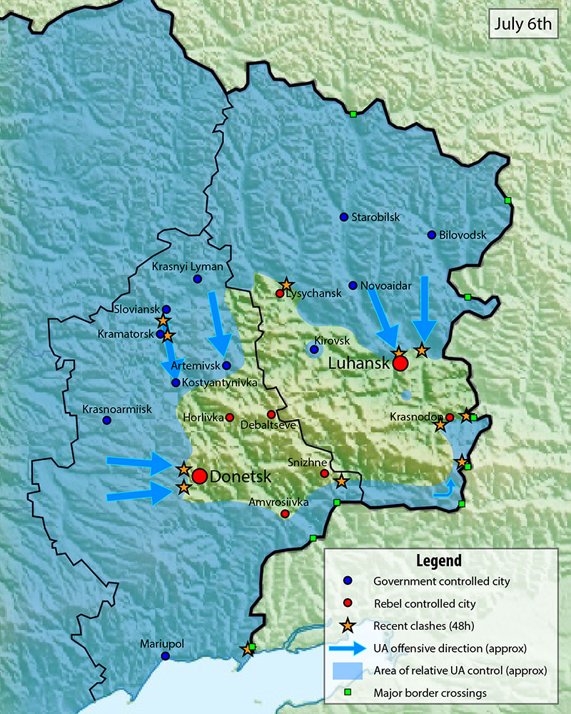 Map: The Changing Situation in Novorossiya (Up to July 6, 2014)