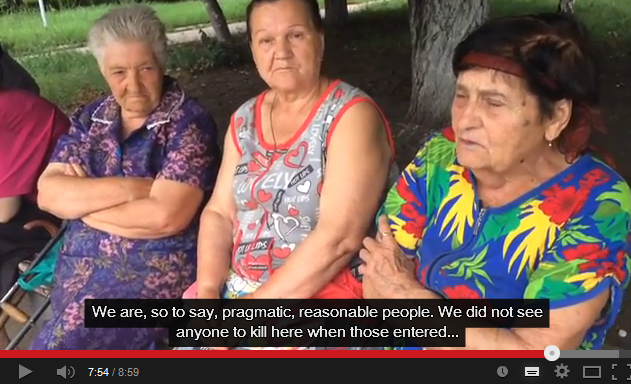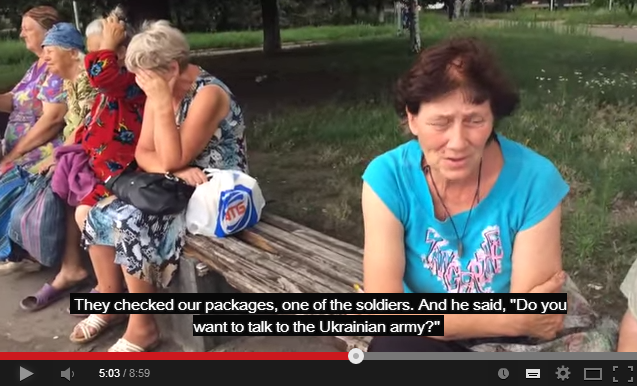 These people are heavily traumatized, and living in a situation of extraordinary tension. Simon Ostrovsky has managed to capture a feel of it in Dispatch 54 of Vice News’ excellent series ‘Russian Roulette’, especially when he asks the soldiers how the locals react to their presence. The reply (from about 06.10) is chilling. They thank us. They cry and thank us. (Soldiers look at each other and laugh) What else can they do?