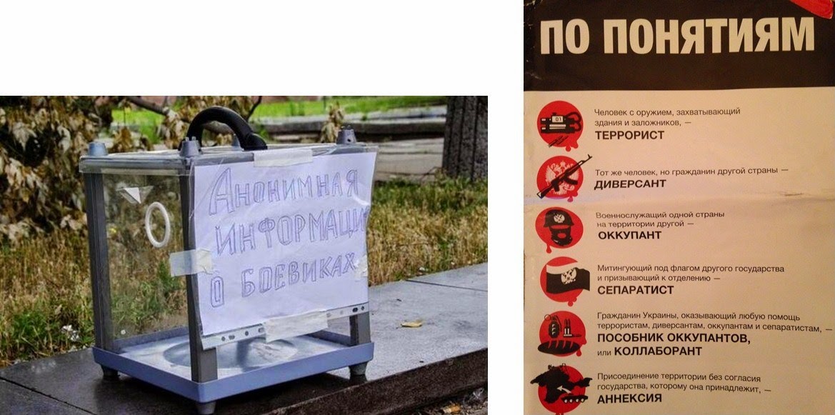 Think about it. The people here have seen their houses destroyed and their friends and neighbours killed in front of them, and now they’ve been left to the mercies of the same Ukrainian army who’s been bombing them. The new authorities have already taken away the young men for questioning, and are (by their own admission) conducting sweeping investigations to find anyone who might in any way have supported the separatist movement. Government leaflets warn of the penalties for assisting ‘terrorists’, and special boxes have even been set up to enable people to inform anonymously against their neighbours.