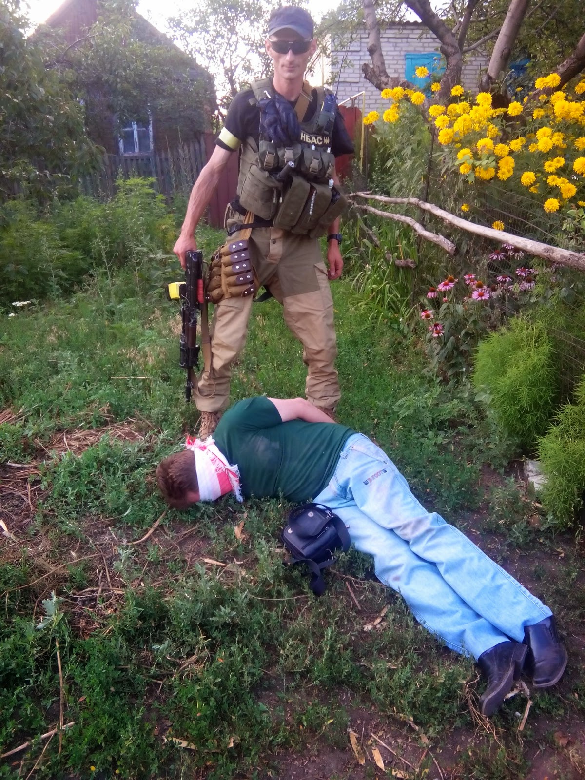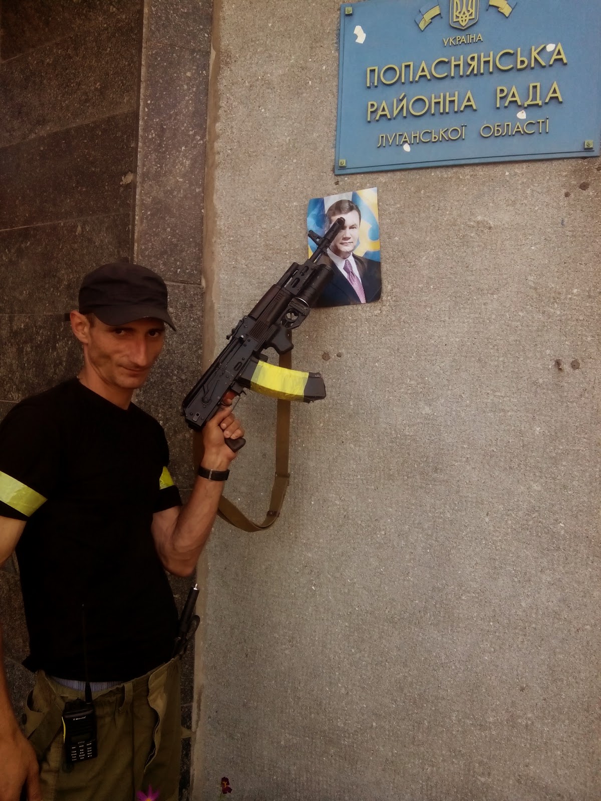 Militiaman: This is Praviy Sector corps. We found, what do you call it, a Praviy Sector ID.