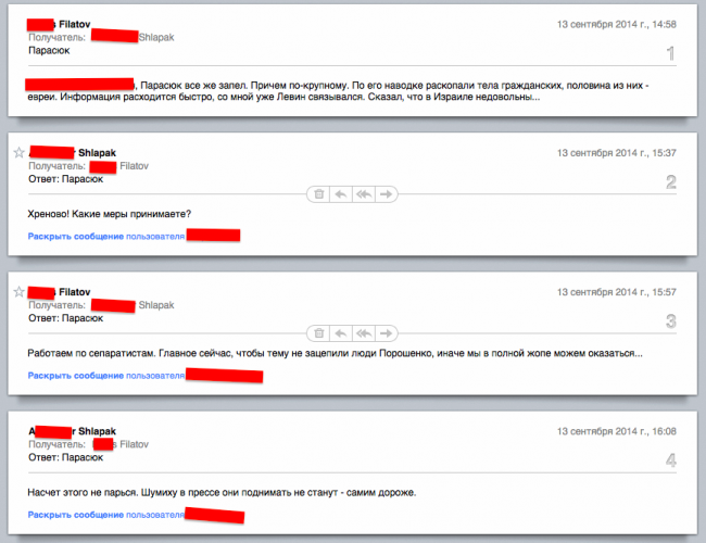 The mailbox of Filatov hacked. The details of emails regarding “Holocaust in Dnepropetrovsk Style” revealed.