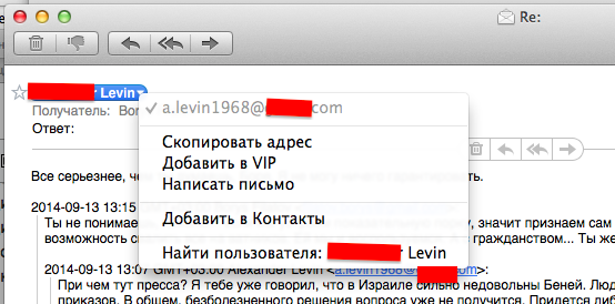 It should be noted, that the content of these posts is quite similar, mentioning Levin as the head of Jewish community, to whom one can resort. Incidentally, some Russian websites refer to him, as well as Ukrainian, English and German ones. If this is a real email address of Levin, we can suppose that all the correspondence is authentic as well.