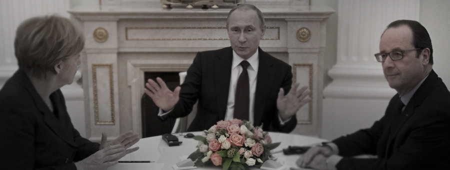 Talks in Moscow between Putin, Hollande and Merkel continue.