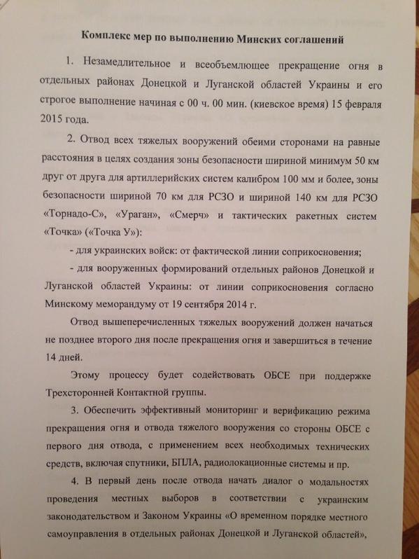 Posted by kennedy applebaum | Feb 12, 2015, 13:48Yes, the “Package of Measures” or “Set of Measures” translated here is the one and only documented executed by the Trilateral Contact Group. Regards, GB